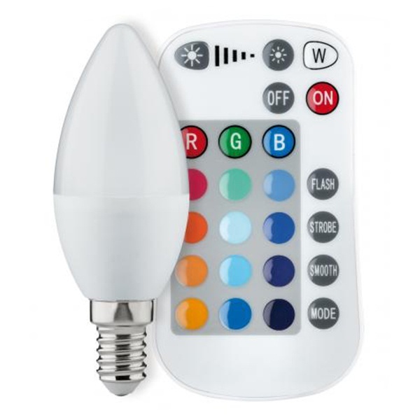 Светодиодная лампочка свеча Paulmann с функцией диммирования и изменением цвета, мощностью 3,5 Ватта, с цоколем E14, с пультом дистанционного управления 28517