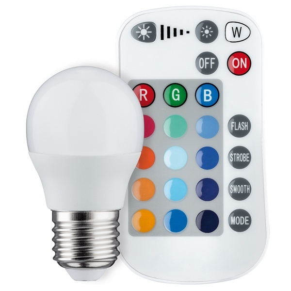 Светодиодная лампочка шарик Paulmann с функцией диммирования и изменением цвета, мощностью 3,5 Ватта, с цоколем E14, с пультом дистанционного управления 28518