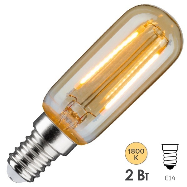 Светодиодная лампочка трубка Vintage Paulmann, мощностью 2 Ватта, с цоколем E14, теплый свет, цвет колбы золото 28526