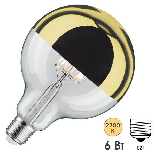 Диммируемая, шарообразная лампочка LED G125 с нитевидными светодиодами, мощностью 6 Ватт, золотое покрытие, теплый свет 28548