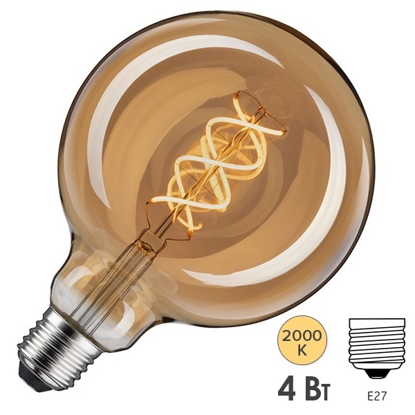 Диммируемая светодиодная декоративная лампа из стекла золотистого цвета, мощностью 4 Ватта, с цоколем E27, D125x175 мм 28594