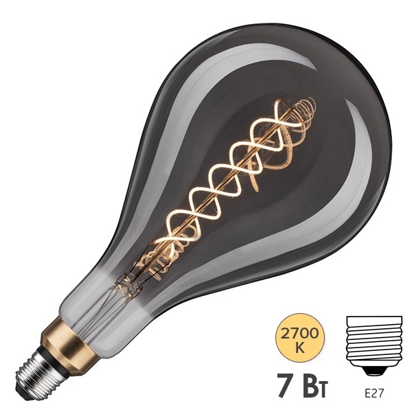 Диммируемая светодиодная декоративная лампа из стекла дымчатого цвета, мощностью 7 Ватт, с цоколем E27, D160x315 мм 28595