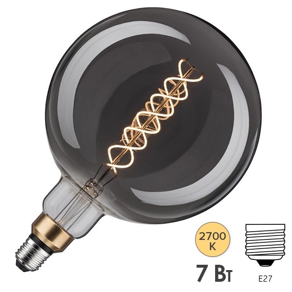 Диммируемая светодиодная декоративная лампа из стекла дымчатого цвета, мощностью 7 Ватт, с цоколем E27, D200x300 мм 28596
