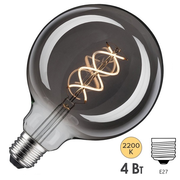 Диммируемая светодиодная декоративная лампа из стекла дымчатого цвета, мощностью 4 Ватта, с цоколем E27, D125x175 мм 28597
