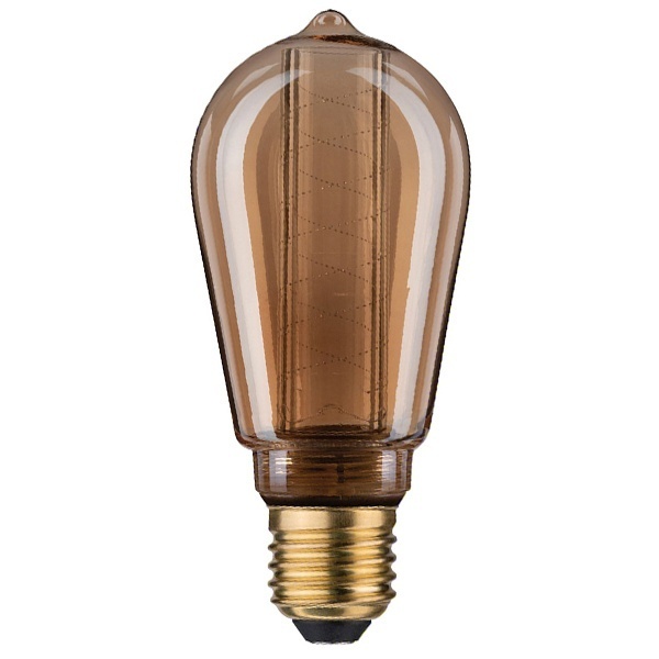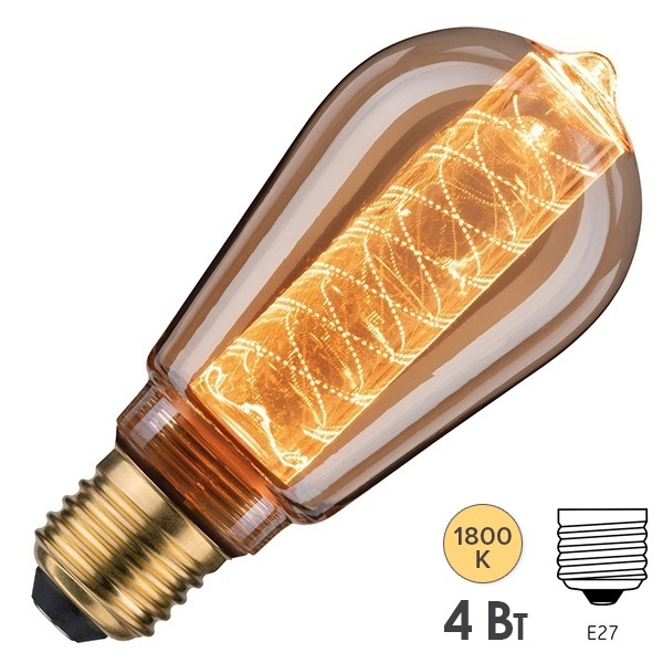 Светодиодная декоративная лампа из стекла золотистого цвета с внутренней светящейся колбой с гравиркой в виде спирали, мощностью 4 Ватта, с цоколем E27 28598