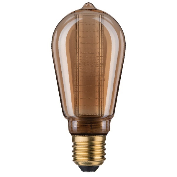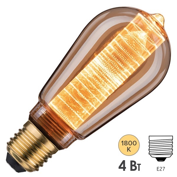 Светодиодная декоративная лампа из стекла золотистого цвета с внутренней светящейся колбой с гравиркой в виде колец, мощностью 4 Ватта, с цоколем E27 28599