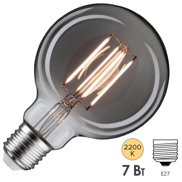Диммируемая, светодиодная лампочка шар Vintage G95 Paulmann, 7Вт, E27, теплый свет, цвет колбы дымчатый 28608