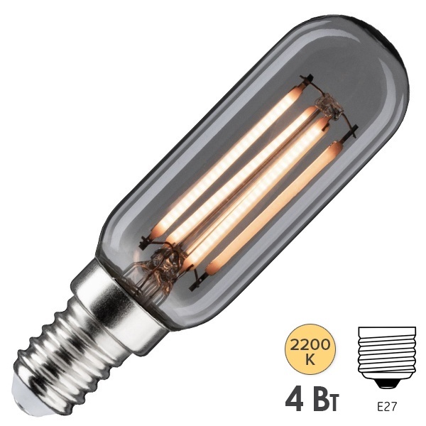 Диммируемая, светодиодная лампочка трубка Vintage Paulmann, 4Вт, E14, теплый свет, цвет колбы дымчатый 28609