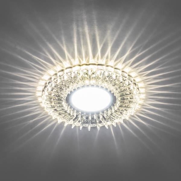 Встраиваемый, декоративный, точечный круглый светильник Ферон CD900 хром с 15LED подсветкой 4000К, 230 Вольт, под лампу MR16 мощностью до 50 Ватт с цоколем G5.3 28843