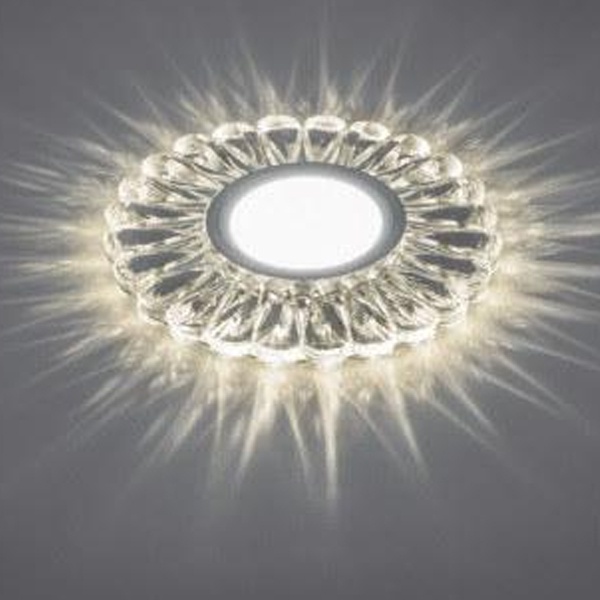 Встраиваемый, декоративный, точечный круглый светильник Ферон CD901 прозрачный хром с 15LED подсветкой 4000К, 230 Вольт, под лампу MR16 мощностью до 50 Ватт с цоколем G5.3 28844