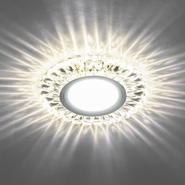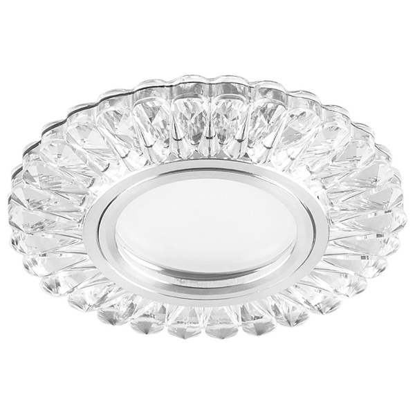 Встраиваемый, декоративный, точечный круглый светильник Ферон CD902 прозрачный хром с 15LED подсветкой 4000К, 230 Вольт, под лампу MR16 мощностью до 50 Ватт с цоколем G5.3 28845