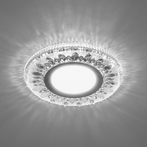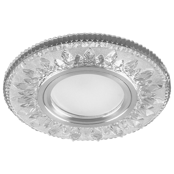 Встраиваемый, декоративный, точечный круглый светильник Ферон CD903 прозрачный хром с 15LED подсветкой 4000К, 230 Вольт, под лампу MR16 мощностью до 50 Ватт с цоколем G5.3 28846