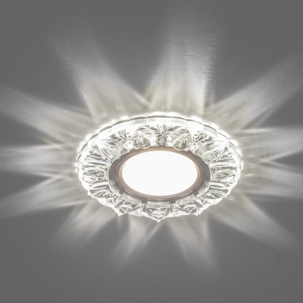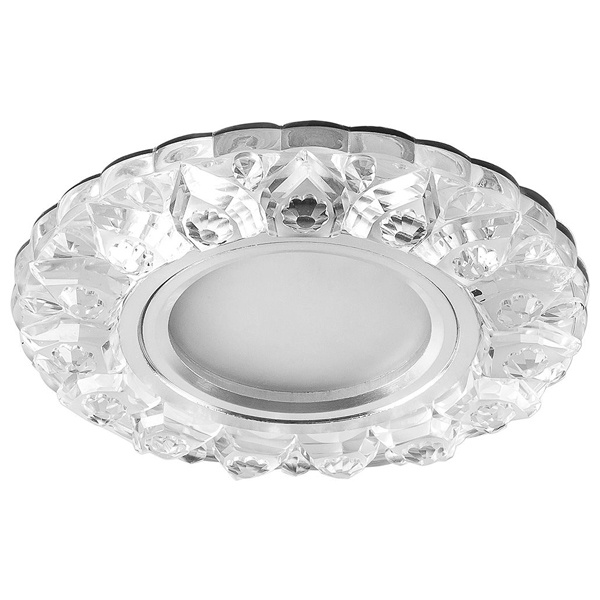 Встраиваемый, декоративный, точечный круглый светильник Ферон CD908 прозрачный, хром с 15LED подсветкой 4000К, 230 Вольт, под лампу MR16 мощностью до 50 Ватт с цоколем G5.3 28891