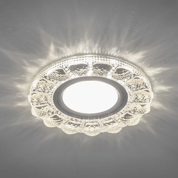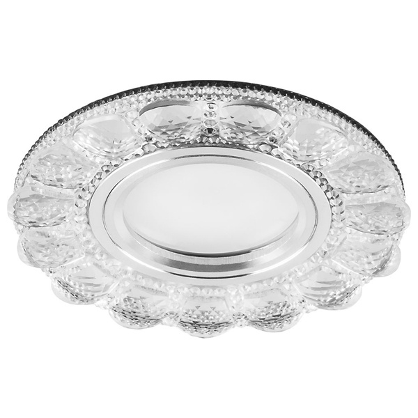 Встраиваемый, декоративный, круглый светильник Ферон CD912 прозрачный хром с подсветкой из 15 светодиодов белого свечения, 230 Вольт, под лампу MR16 мощностью до 50 Ватт с цоколем G5.3 28919