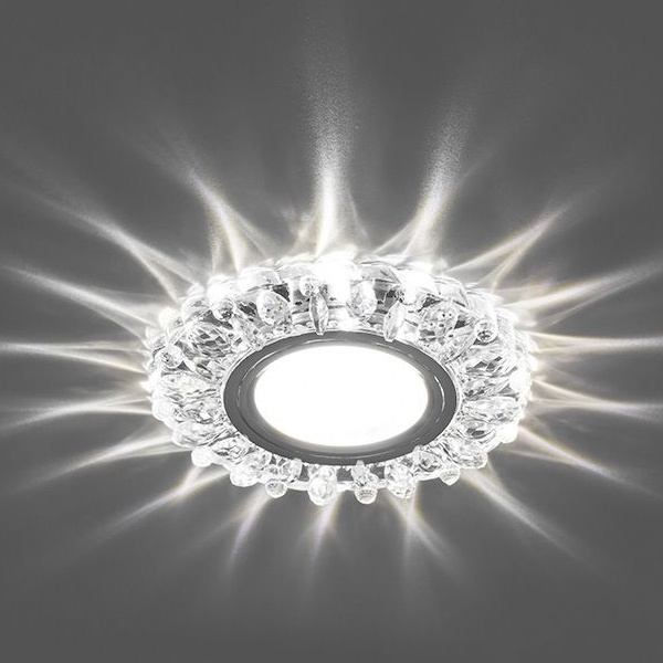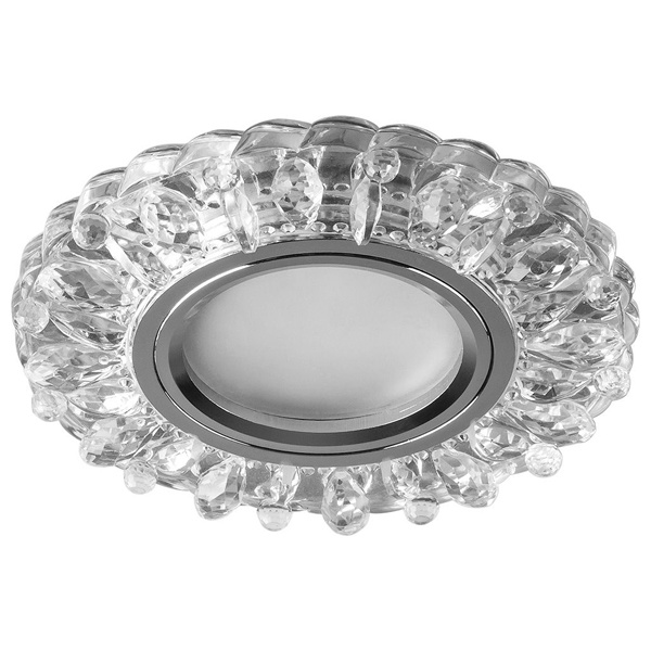 Встраиваемый, декоративный, круглый светильник Ферон CD916 прозрачный хром с подсветкой из 15 светодиодов белого свечения, 230 Вольт, под лампу MR16 мощностью до 50 Ватт с цоколем G5.3 28988