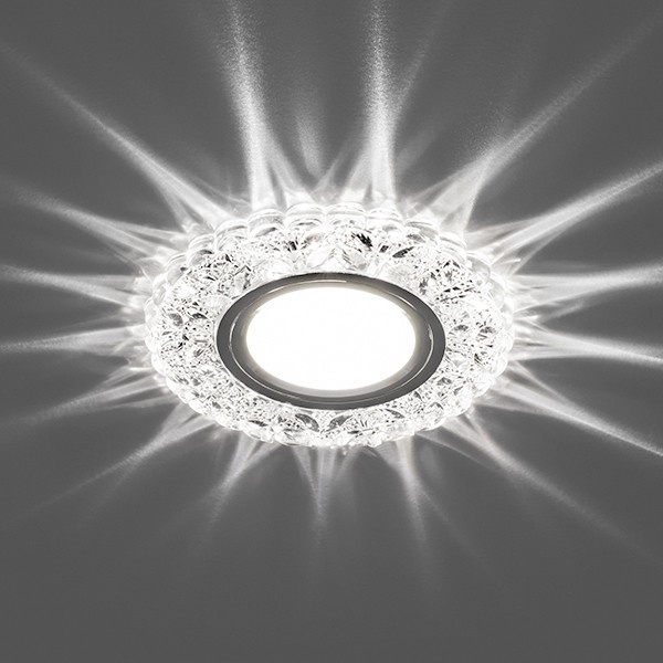 Встраиваемый, декоративный, круглый светильник Ферон CD939 прозрачный хром с подсветкой из 15 светодиодов белого свечения, 230 Вольт, под лампу MR16 мощностью до 50 Ватт с цоколем G5.3 29472