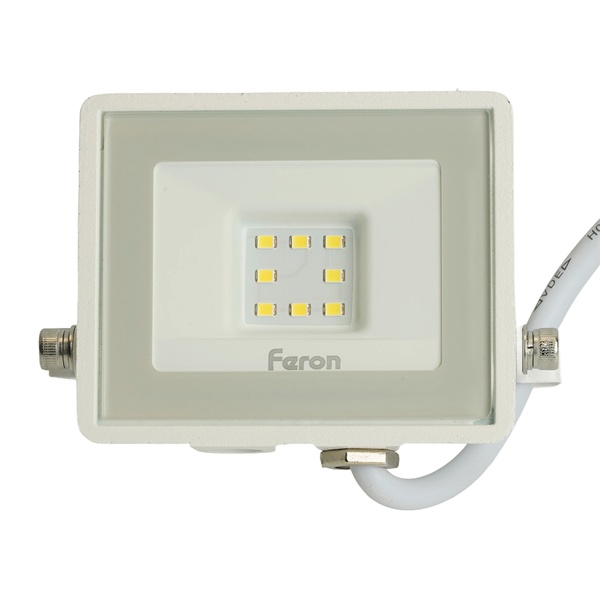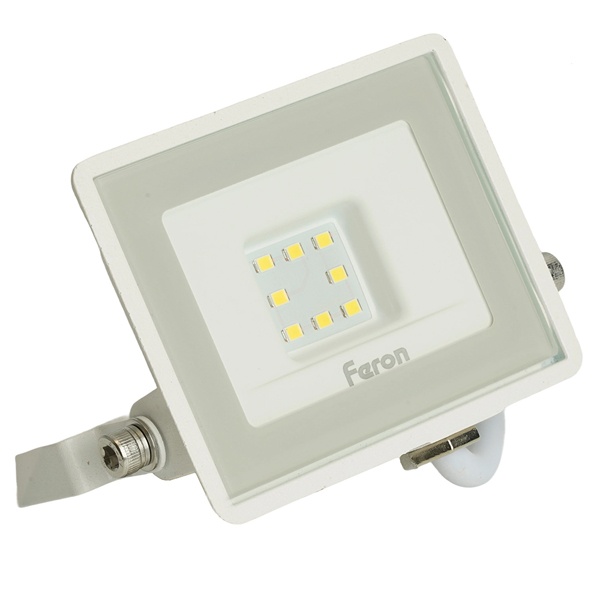 Прожектор светодиодный многоматричный с монтажным креплением на кронштейн, (ДО) FERON LL-918, 10W, 6400К (холодный белый), 230V/50Гц, 1000Lm, IP65, угол рассеивания 120,*SMD2835, раб.t -40C - +40C, цвет белый, корпус алюминий литой под давлением + стекло, 81*21*76 мм