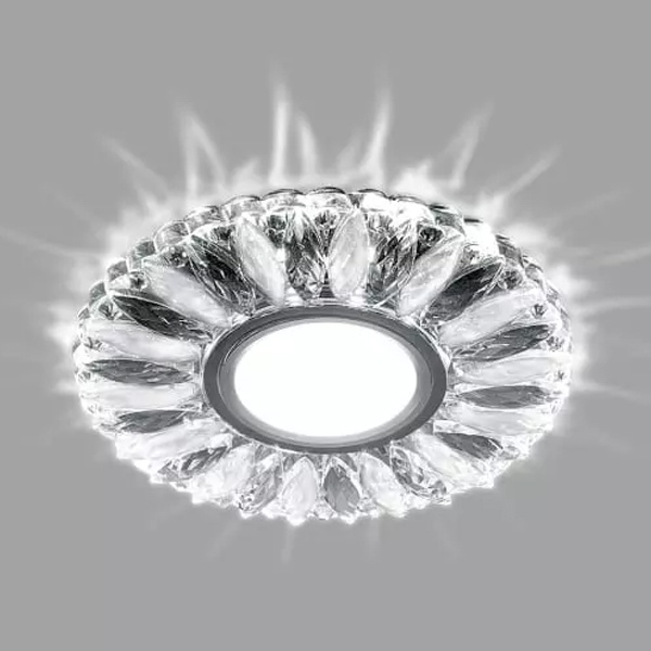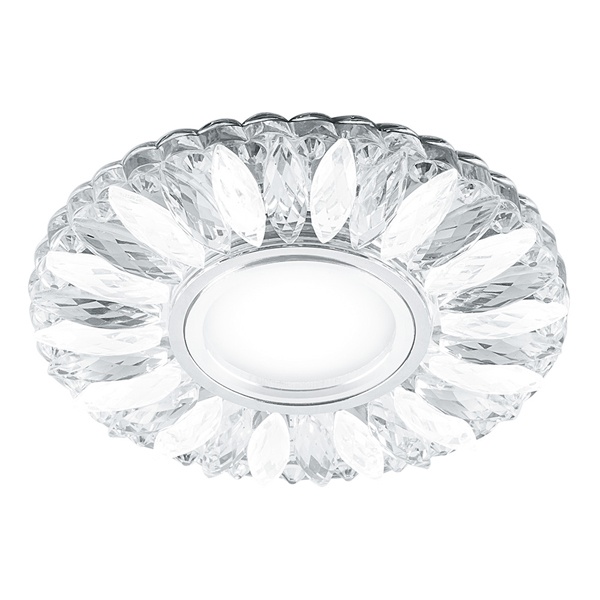 Встраиваемый, декоративный, круглый светильник Ферон CD917 белый матовый-прозрачный хром с подсветкой из 15 светодиодов белого свечения, 230 Вольт, под лампу MR16 мощностью до 50 Ватт с цоколем G5.3 29536