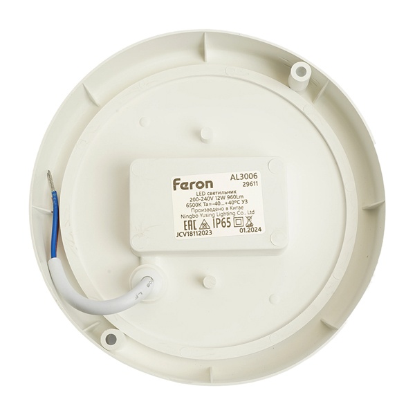 Светильник накладной светодиодный, пылевлагозащищённый (ДПБ) FERON AL3006, 12W, 6500К (дневной), 200-240V, 960Lm, IP65, угол рассеивания 120, цвет белый, корпус пластик, рассеиватель пластик, 140*140*50