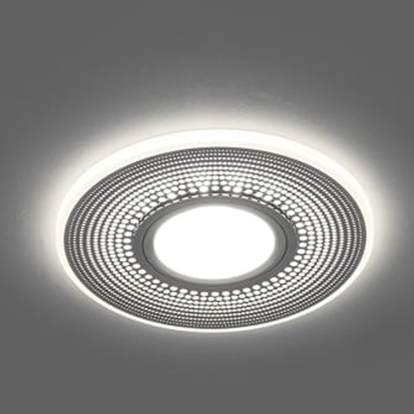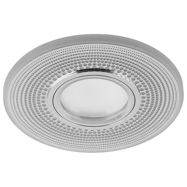 Встраиваемый, декоративный, круглый светильник Ферон CD950 белый матовый хром с подсветкой из 15 светодиодов белого свечения, 230 Вольт, под лампу MR16 мощностью до 50 Ватт с цоколем G5.3 29712