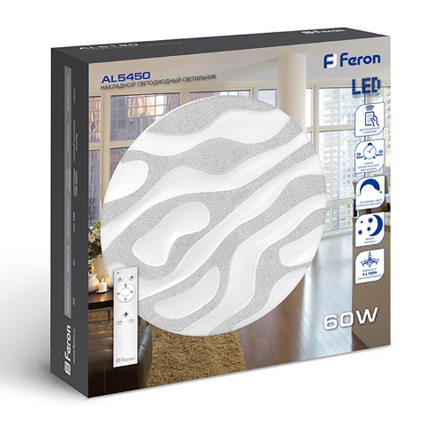Накладной светодиодный светильник с пультом дистанционного управления Ферон AL5450, 3000-6500 К, 60 Вт, эффект звездное небо 29718