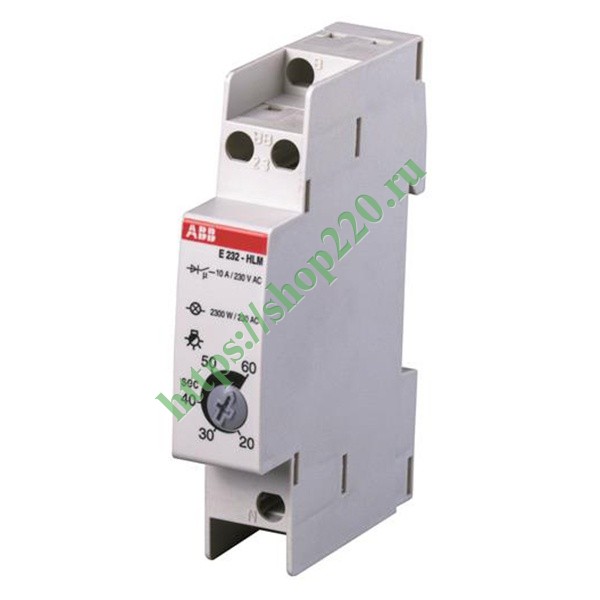 Сигнализатор отключения света E232-HLM занимают пол модуля и используется в качестве дополнительного устройства для всех реле времени для лестничных клеток. Прибор соответствует DIN 18015-2. Сигналом отключения является уменьшение на 50% интенсивности освещения лампами накаливания или галогенных ламп 230В (общей мощностью до 2300Вт). Время подачи сигнала регулируется в диапазоне 20-60с.