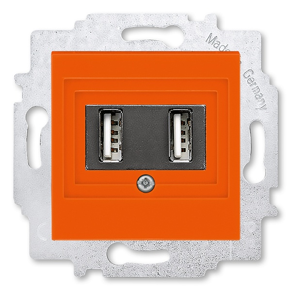 Розетка зарядная АББ Левит с двумя разъемами USB тип A, скрытой установки, цвет оранжевый 2CHH290040A6066