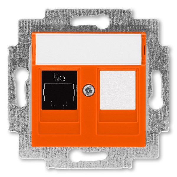 Механизм компьютерной розетки АББ Левит RJ45 категория 5e с накладкой, скрытой установки, с полем для надписи, цвет оранжевый 2CHH295117A6066