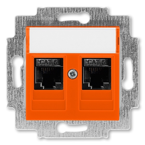 Механизм компьютерной розетки АББ Левит с двумя разъемами RJ45 категория 6e с накладкой, скрытой установки, с полем для надписи, цвет оранжевый 2CHH296118A6066