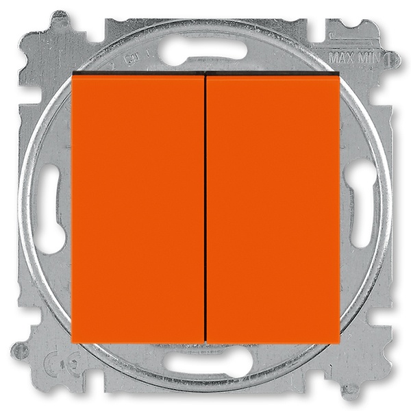 Механизм двухклавишного переключателя АВВ Levit скрытой установки с накладкой, цвет оранжевый/дымчатый черный 2CHH595245A6066