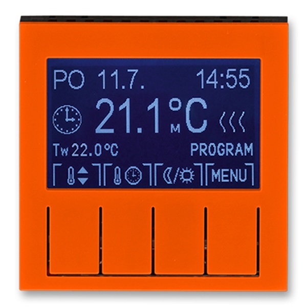 Универсальный программируемый термостат АББ Зенит скрытой установки, цвет оранжевый/дымчатый черный 2CHH911031A4066