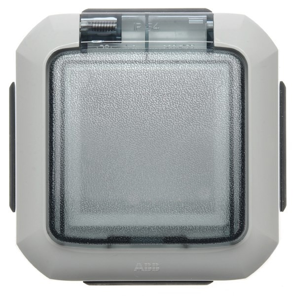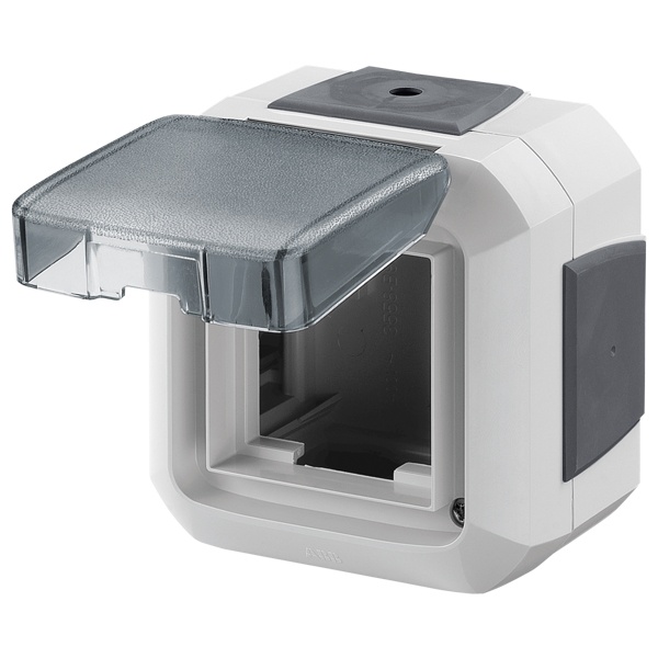 Влагозащищенная подъемная коробка с крышкой открытой установки для модульных электроустановочных изделий 45*45 мм, серого цвета, АББ Вариант+. 2CHN066541C4517