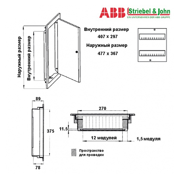 Электрический шкаф ABB серии UK-500 для скрытого монтажа. Серия бытовых шкафов ABB UK может использоваться для различного применения в зависимости от конкретной версии и характеристик. Обеспечивает удобный доступ к автоматическим выключателям и имеет современный дизайн. Все варианты исполнения обеспечивают простую и быструю установку модульных устройств. Имеется возможность установить замок на дверцу.