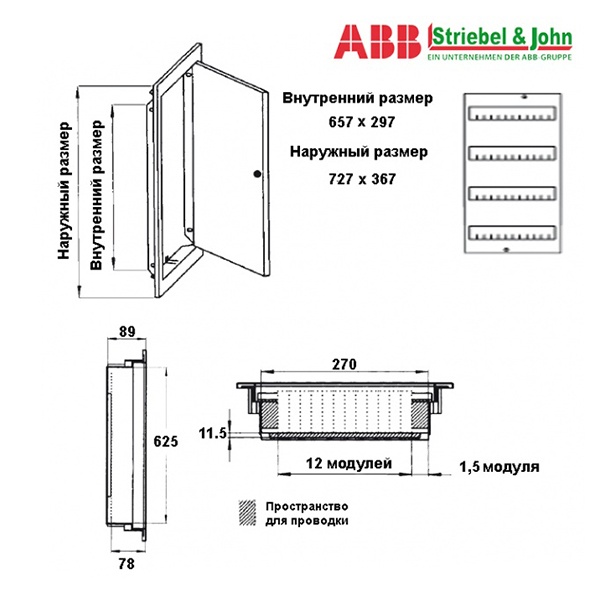 Электрический шкаф ABB серии UK-500 для скрытого монтажа. Серия бытовых шкафов ABB UK может использоваться для различного применения в зависимости от конкретной версии и характеристик. Обеспечивает удобный доступ к автоматическим выключателям и имеет современный дизайн. Все варианты исполнения обеспечивают простую и быструю установку модульных устройств. Имеется возможность установить замок на дверцу.