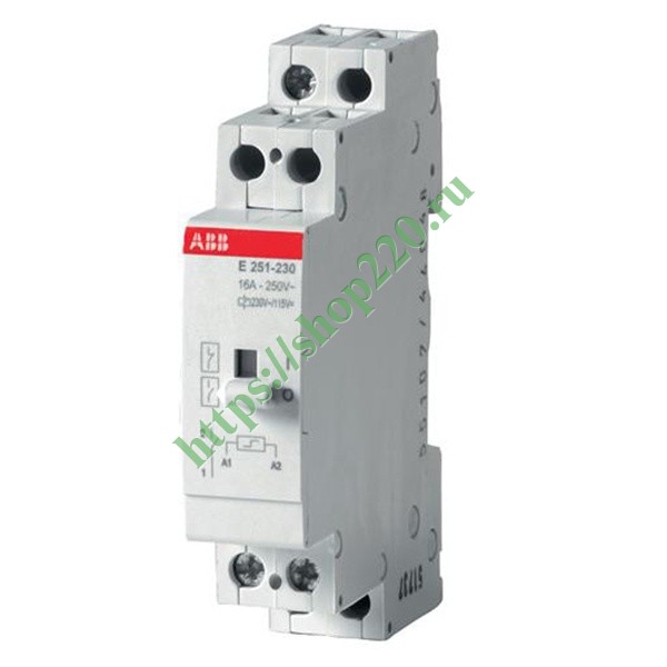 Реле фирмы ABB типа E251-230 переключают свои контакты при каждом импульсе, посланном на катушку управления, посредством кнопки с нормально открытым контактом. Идеальны для управления освещением, как из одной так и из нескольких точек. Имеют функцию ручного управления и индикацию положения контактов.