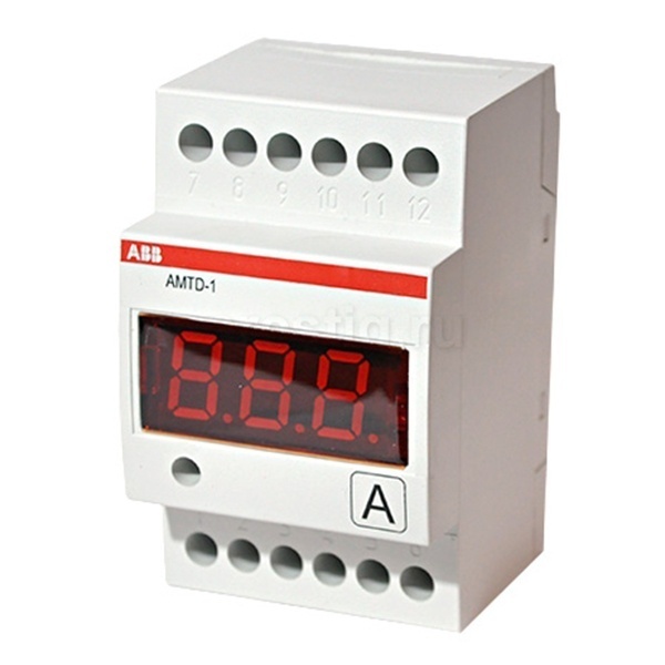 Модульное измерительное устройство от известного производителя ABB представляет собой амперметр переменного тока с цифровым дисплеем AMTD-1. Максимальное значение входного сигнала 5 Ампер. При подключении через трансформатор тока максимальный диапазон измерений данной модели достигает 600 Ампер. Этот прибор имеет минимальную погрешность, так как соответствует наивысшему классу точности 0,5%. Он невосприимчив к вибрациям, в отличие от механических аналоговых приборов. Работает от сети с напряжением 230 Вольт и частотой 50 Герц.