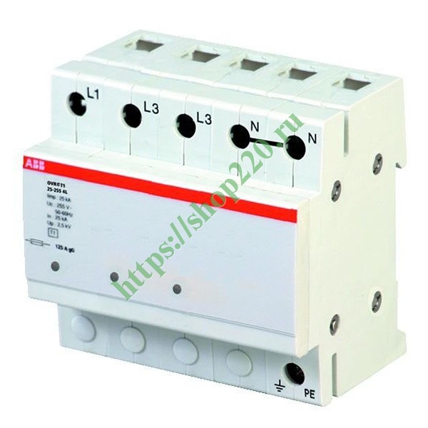Устройство защиты от импульсных перенапряжений серии OVR объединенного типа (тип 1+тип 2) ABB с тремя полюсами и нейтралью. 2CTB815101R9000