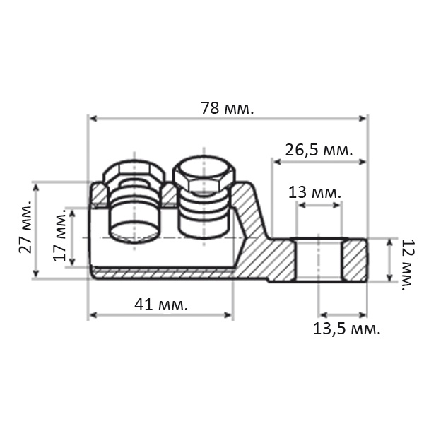 Характеристики по классификатору Etim по данным производителя:Наконечник кабельный винтовой/болтовой EC001054