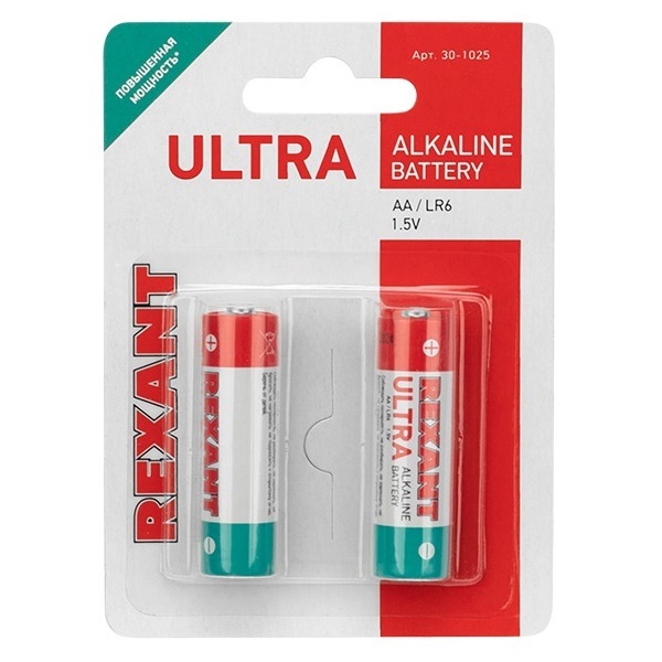 • Батарейка Rexant AA ультра алкалиновая LR6 1,5V 2800mAh (упаковка 2 шт)