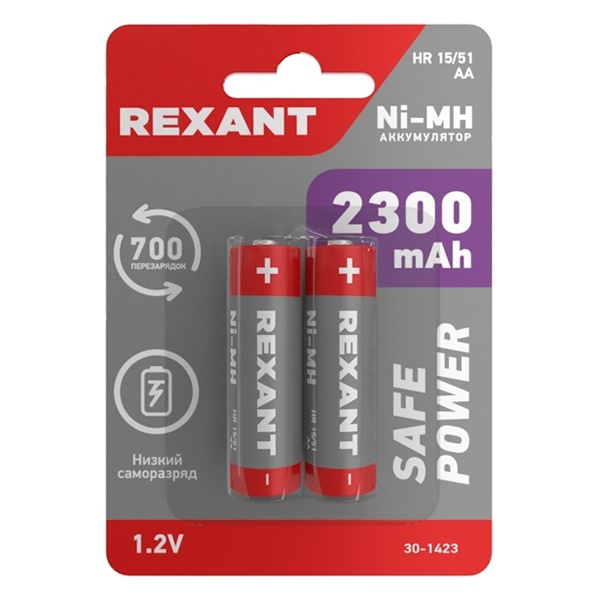 30-1423 Аккумулятор Rexant AA HR6 1.2V 2300мАч (упаковка 2 шт) фото 3