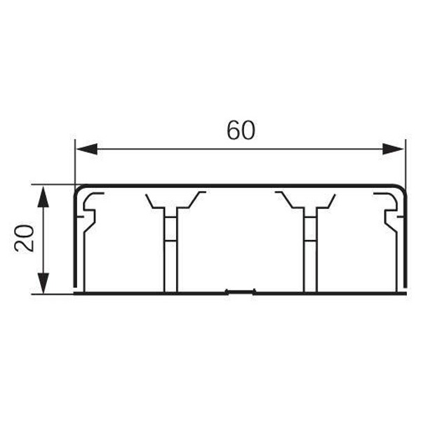 Декоративный белый короб кабельный 60*20 из ПВХ пластика с разделителем для монтажа электропроводки на стене 030114