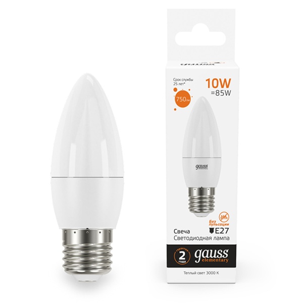 Энергосберегающая LED лампочка свеча мощностью 10 Ватт с цоколем E27 теплый белый свет 30210