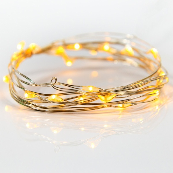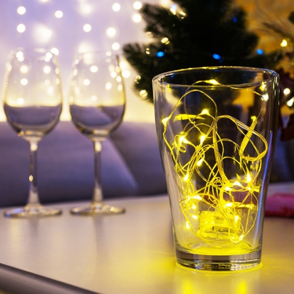 Гирлянда светодиодная "Роса" состоит из тонкого провода длиной 2 м с расположенным на нем 20 светодиодами желтого цвета свечения, а также батарейного блока. Блок крепится на дополнительный провод 30 см. Питание осуществляется при помощи 2 батареек типа CR2032. Данная гирлянда найдет свое применение в дизайнерских решениях внутри помещений при украшении предметов интерьера, растений и даже букетов цветов.