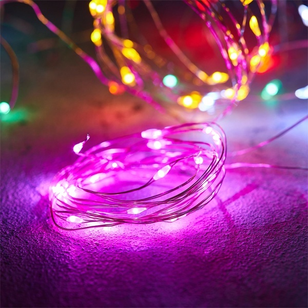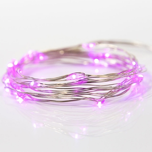 Гирлянда светодиодная "Роса" состоит из тонкого провода длиной 2 м с расположенным на нем 20 светодиодами розового цвета свечения, а также батарейного блока. Блок крепится на дополнительный провод 30 см. Питание осуществляется при помощи 2 батареек типа CR2032. Данная гирлянда найдет свое применение в дизайнерских решениях внутри помещений при украшении предметов интерьера, растений и даже букетов цветов.