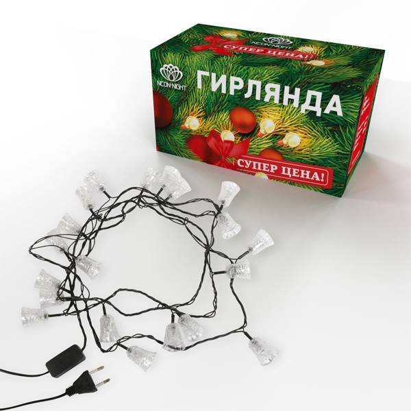 Новогодняя светодиодная гирлянда Колокольчики, длиной 2,8 метра, напряжением 230 вольт, цвет свечения RGB 303-062