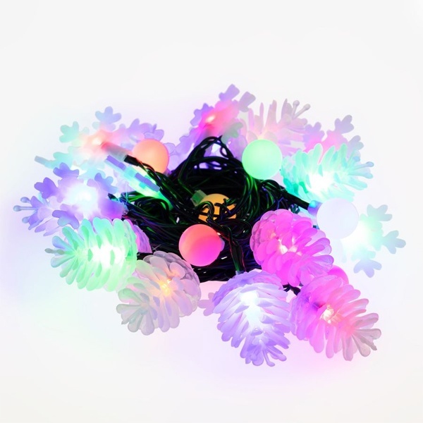 • Гирлянда светодиодная универсальная с насадками (шарики, снежинки, елочки) 30 LED мультиколор, 4,4 м