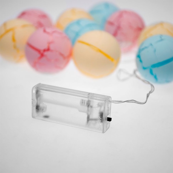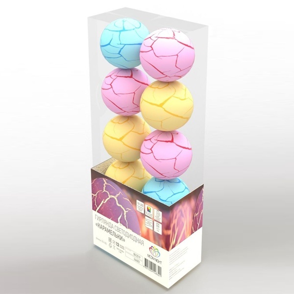 Светодиодная гирлянда «Карамельки» состоит из электрического шнура из прозрачного ПВХ, батарейного блока и 10 пластиковых разноцветных шариков, мягко подсвечиваемых 10 диодами. Поверхность фигурок с фактурой «кракелюр» пропускает яркие лучи, создавая магический эффект объемного свечения. Гирлянда не нуждается в прямом подключении к электросети и питается от двух батареек типа АА, что гарантирует абсолютную безопасность в использовании. Украшение прекрасно подходит для оформления гостиной, спальни, детской комнаты. Гирлянда работает в режиме постоянного свечения.