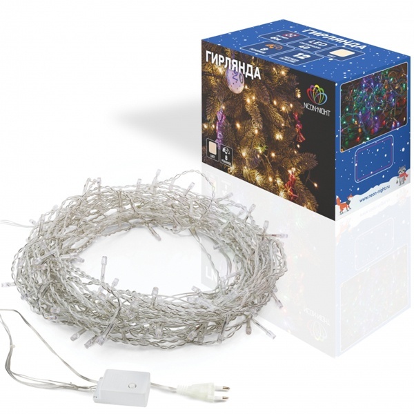 Гирлянда «Твинкл» длиной 4 метра состоит из шнура в прозрачной ПВХ оболочке и ярких светодиодов теплого белого оттенка. Такое решение идеально подходит для украшения новогодних елей популярных цветов: на фоне темной кроны гирлянда создает эффект инея, а на серебристых елочках изделие сливается с общим фоном, подсвечивая пушистые ветки. 25 диодов не нагреваются, экономично потребляют электроэнергию. Гирлянда отвечает нормам безопасности и рассчитана на 5 лет стабильной работы в сухих отапливаемых помещениях. Для управления светодинамикой предусмотрен контроллер с 8 режимами. Питающий шнур имеет длину 3 метра — удлинитель не потребуется.
