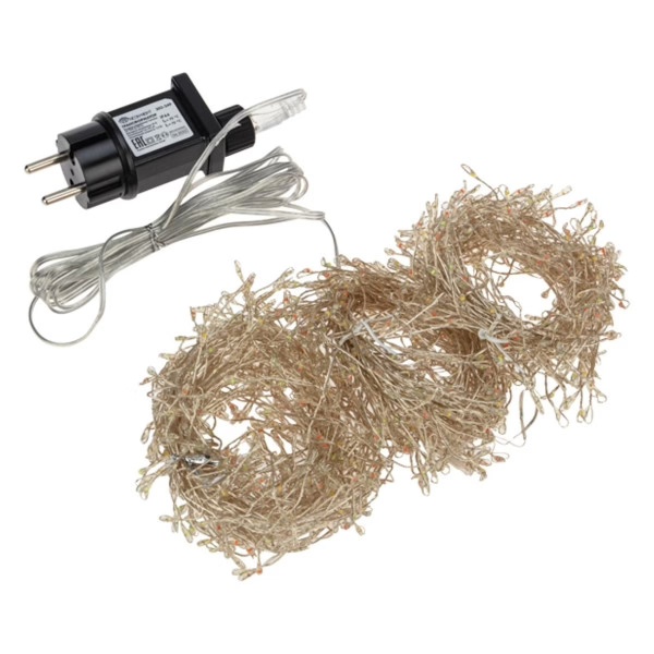 Светодиодная декоративная гирлянда Роса Фейерверк длиной 20 метров, цвет свечения белый, 1000 светодиодов, с трансформатором 303-245