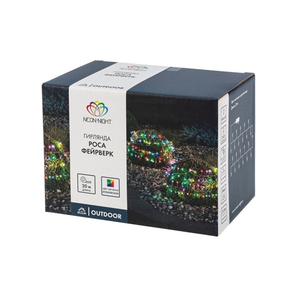 303-249 Гирлянда-роса Neon-Night Фейерверк 20+3м, 1000LED, 10Вт, мультиколор с трансформатором 220V IP44 фото 7